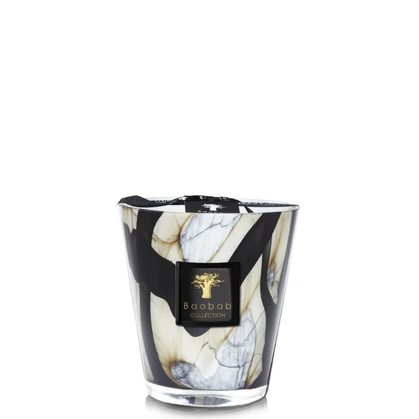 The scented candle is housed in an ornate, marbled glass jar, expertly hand-blown by the brand’s artisans. The flickering flames from the candle shine through transparent pockets of the marbled vessel, illuminating your interior spaces to create a cosy ambiance and inspire a tranquil atmosphere.