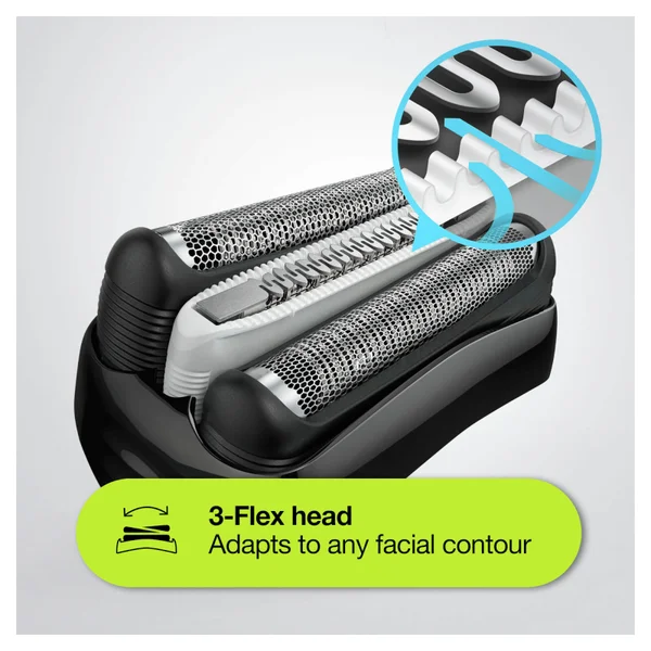 Harnessing the power of a triple action cutting system, the waterproof groomer is able to shave progressively closer. Twin foils and an integrated middle trimmer work in synergy to trim both long and short hairs, tackling even stubborn 3-day beards.