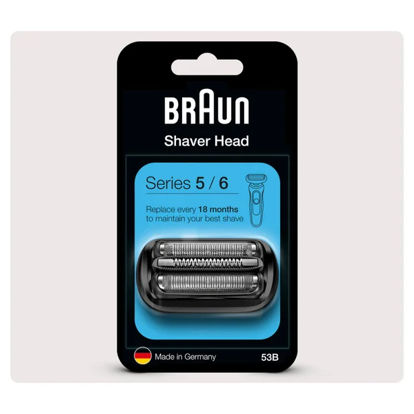 Discover true smoothness with Braun’s 5 53B replacement head. New blades are crucial when it comes to ensuring a clean, accurate and irritation-free shaving experience, which is why Braun recommends getting a new attachment every 18 months. Performance can become weaker as the blades become blunt, increasing the risk of redness and coarseness. One quick change restores your razor to its peak level of performance, allowing the blades to glide effortlessly over your visage, leaving sumptuous softness in their wake.