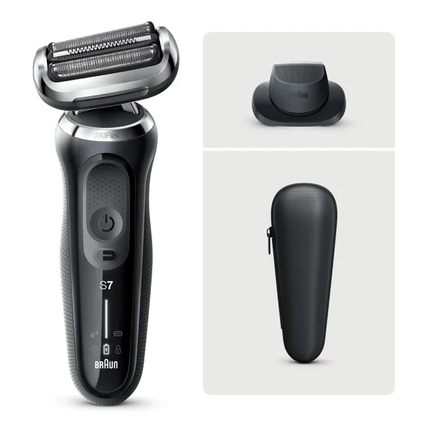 The Braun Series 7 70-N1200s Electric Shaver is designed for a smooth shave – even in tricky areas. Equipped with 360° adaptation, the waterproof shaver offers maximum contact and control.