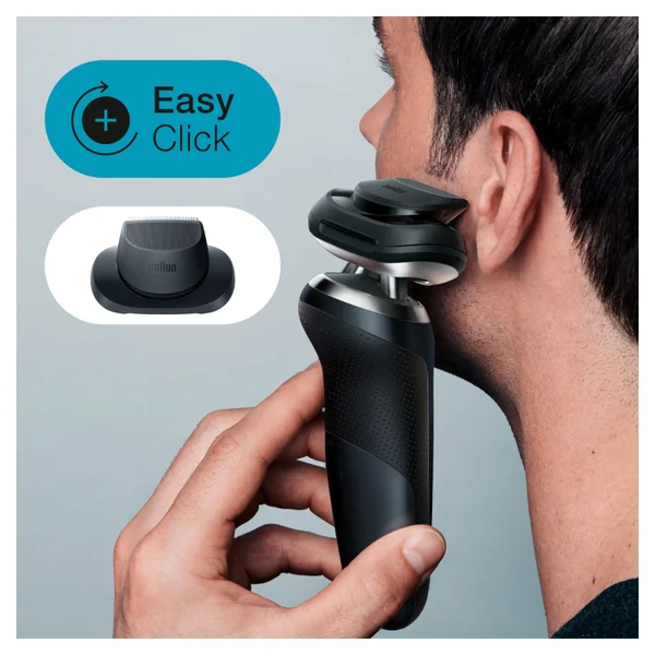 Using Auto Sense Technology, the shaver adapts its power to suit the density of your beard to remove an optimal number of hairs with every stroke. The precision trimmer attachment easily slots in place with EasyClick, allowing you to keep sideburns and your moustache well-groomed.