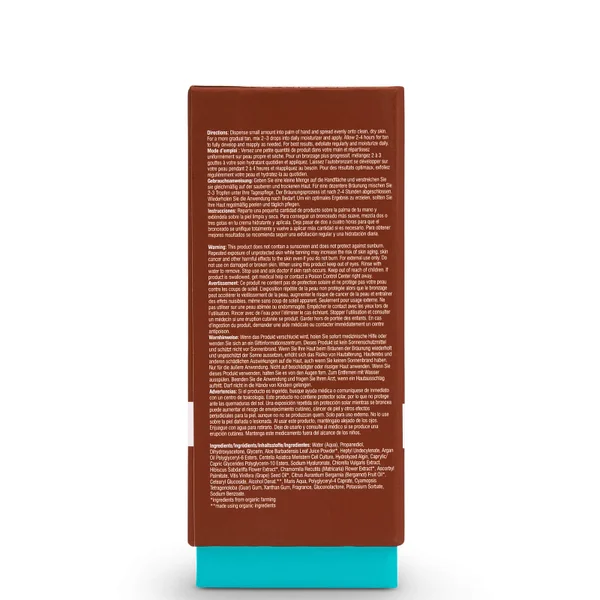 Brightening Vitamin C works to offer a lit-from-within gleam, complemented by deeply-hydrating Argan Oil for touchable softness. A ‘just stepped off a plane’ impression is achieved, while the scent of Pina Colada and Coconut conceals the dreaded biscuit self-tan fragrance.