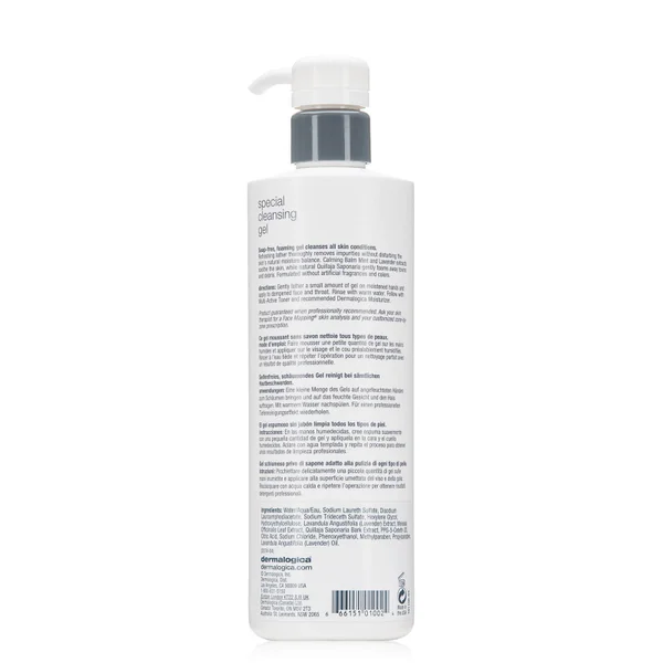 Dermalogica Special Cleansing Gel foams away impurities without leaving your skin feeling tight or dry. Anti-inflammatory balm mint and lavender extracts soothe your skin, while natural quillaja saponaria gently foams away toxins and cleanses debris.