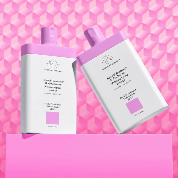 Featuring a transformative jelly-to-foam texture, Drunk Elephant’s Scrubbi Bamboes™ Body Cleanser delivers exfoliating and cleansing benefits in synergy. The body scrub uses ultra-mild surfactants to remove sweat, excess oil and impurities, while biodegradable bamboo beads gently buff away dead skin cells.