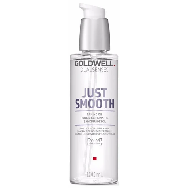 Smooth and control frizz-prone hair with Goldwell Dualsenses Just Smooth Taming Oil, a leave-in styling formula that promotes sleek, smooth locks.