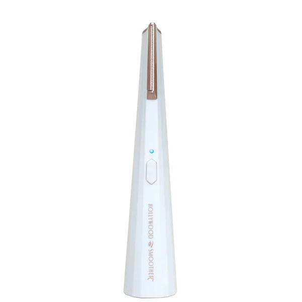 Discover the skincare benefits of dermaplaning with the Hollywood Smoother in Rose Gold. This beauty innovation aims to remove the surface layer of dead skin cells and hairs from the face to leave your skin feeling instantly smoother. The sonic vibration of the device allow the smoother to gently but effectively exfoliate and shave the skin, removing the barrier of hair and dead skin cells to allow for improved skincare absorption and a refined skin texture. The multi-use device can also help to tidy up the hairline for a sleek finish.