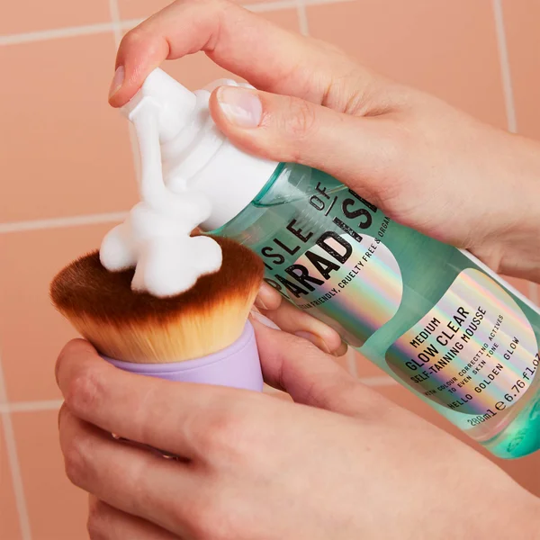 Introducing the Isle of Paradise Medium Glow Clear Mousse, a best-selling formula that encourages a luminous, natural-looking tan. Developing over four to six hours with a deep colour payoff, the mousse delivers up to seven days of wear, its transfer-proof formula resisting staining.