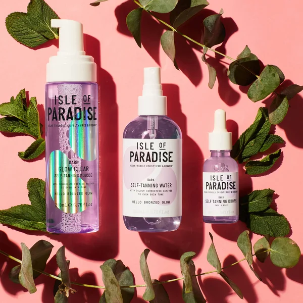 Fake a holiday glow with the Isle of Paradise Self-Tanning Water in Medium. This transparent tanning water wont transfer onto your clothes or sheet and no guide colour means no grubby-looking residue so you can tan and go! Coconut, Chia Seed & Avocado Oils nourish and condition the skin for a happy, hydrated glow and even colour. The water is infused with a Hyper Violet ™ complex featuring colour correcting actives to ensure the most natural-looking tan possible. Dark contains innovative purple pigments to counteract sallow and orange tones for a gorgeous golden tan. The tanning water comes in a fine spray bottle for even distribution and can be used as a makeup setting spray to build a healthy-looking glow with no guide colour to avoid blocked pores. Discover the convenience of easy, no-mess tanning for the ultimate bronzed babe look!