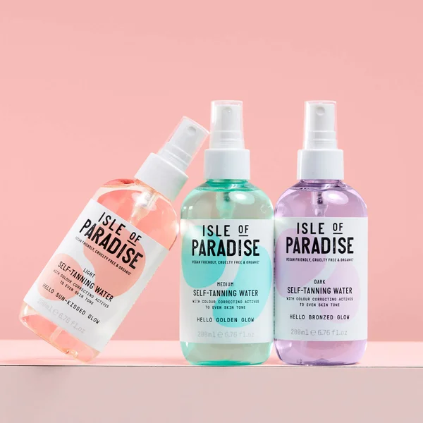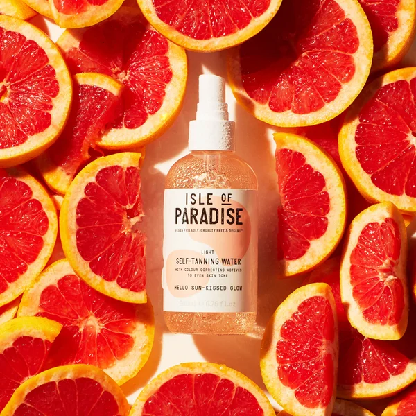 Fake a holiday glow with the Isle of Paradise Self-Tanning Water in Light. This transparent tanning water wont transfer onto your clothes or sheet and no guide colour means no grubby-looking residue so you can tan and go! Coconut, Chia Seed & Avocado Oils nourish and condition the skin for a happy, hydrated glow and even colour. The water is infused with an OXY-Glow™ complex featuring colour correcting actives to ensure the most natural-looking tan possible. Light features peach pigments to counteract blue undertones in fair skin for a stunning golden tan. The tanning water comes in a fine spray bottle for even distribution and can be used as a makeup setting spray to build a healthy-looking glow with no guide colour to avoid blocked pores. Discover the convenience of easy, no-mess tanning for the ultimate bronzed babe look!