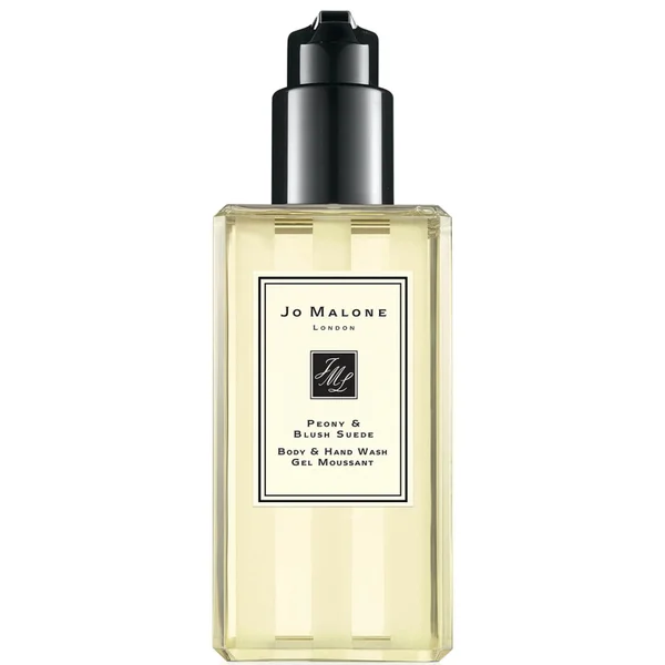 Our refreshing body & hand wash with meadow foam seed gently cleanses and deliciously scents your skin with luxurious Peony & Blush Suede. Peonies in voluptuous bloom mingling with the sensuality of soft, blush suede. The enhanced formula helps leave body and hands feeling conditioned and soft. Its crystal clear gel transforms into a rich lather and its uplifting fragrance fills the bathroom, immersing you in delicate scent.