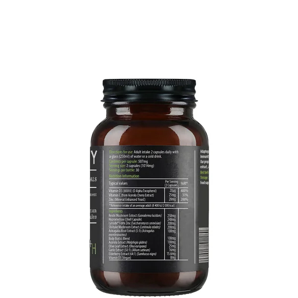 The food supplements utilise zinc to contribute to the normal function of the immune system while supporting the maintenance of normal bones, skin and nails. The capsules also contain vitamin C to contribute to the normal functioning of the nervous system and energy-yielding metabolism. Complete with vitamin D3, a blend of mushrooms and botanical extracts.