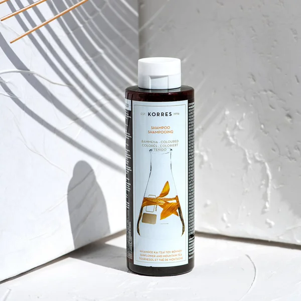 KORRES Shampoo Sunflower and Mountain Tea is specially formulated shampoo for coloured hair, designed to protect and deeply moisturise chemically treated hair. Sunflower and mountain tea, natural sources of polyphenols, help protect hair colour and sheen from the rigours of frequent shampooing, styling and sun exposure.