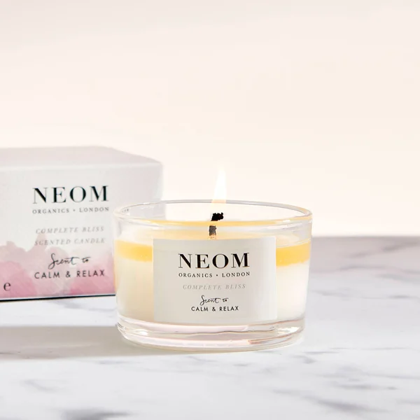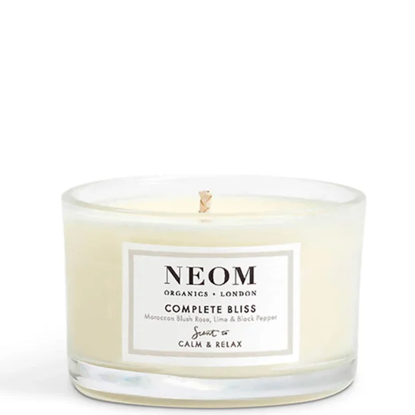 Uplift your mood with the lavish Complete Bliss Travel Scented Candle from NEOM Organics. Made with a burn time of 20 hours, the travel-friendly candle evokes a refreshing fragrance with extracts of blush rose, lime and black pepper. Made from a complex blend of natural vegetable wax and the purest ingredients, it will lift your mood and inspire confidence whilst indulging the senses.