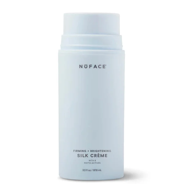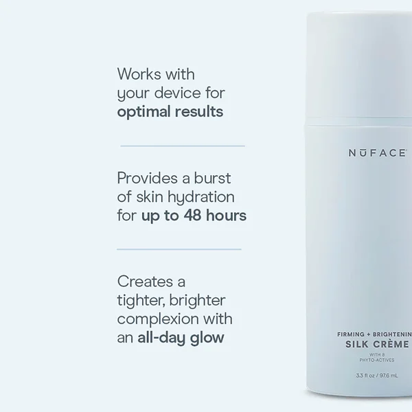 Boasting a refreshingly-light, silky texture, the Firming and Brightening Silk Crème has been developed for use with your NuFACE device, with proprietary IonPlex™ enhancing the delivery of microcurrents for optimal results. The serum-cream is enriched with a blend of hyaluronic acid, African leaf juice and supporting botanicals to deeply quench and lock in essential moisture for a plump and cushioned dewiness. Offering up to 48 hours of continuous hydration, the weightless formula simultaneously firms and brightens to leave your complexion looking radiant and youthful.