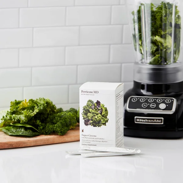 Achieve optimum levels of health with Perricone MD Super Greens Capsules, a daily drink powder that protects and replenishes the body from the inside out.