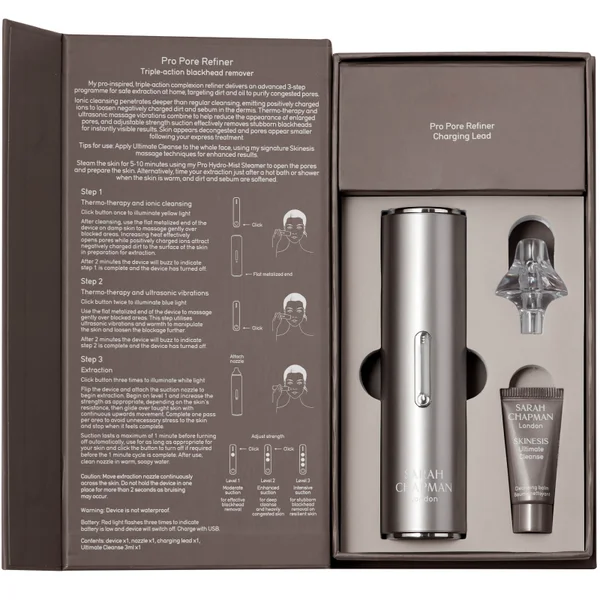 Seeking to clarify congested skin, Sarah Chapman’s Skinesis Pro Pore Refiner is a triple-action device that offers a three-step extraction routine to help remove blackheads and build-up.