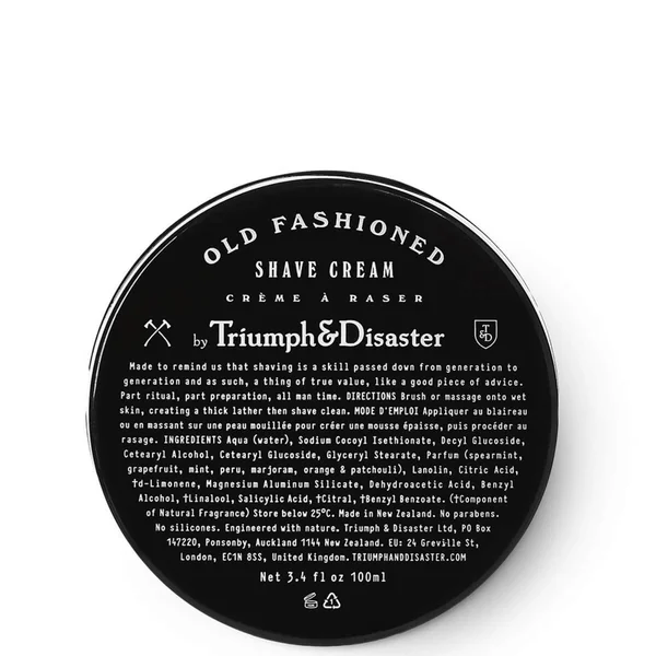 Achieve the perfect traditional shave with Triumph and Disaster Old Fashioned Shave Cream. It softens your whiskers and creates a rich lather, which allows for a smooth, close and comfortable shaving, minimising the risk of razor bumps, ingrown hairs and skin irritation.