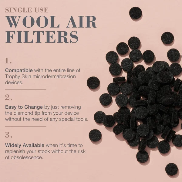 Replaced with each use of your Trophy Skin microdermabrasion device, the Replacement Filters help to provide optimal suction by protecting against clogging and damage of the motor. Simply remove the diamond tip, discard the used filter and replace with a new one before each treatment.